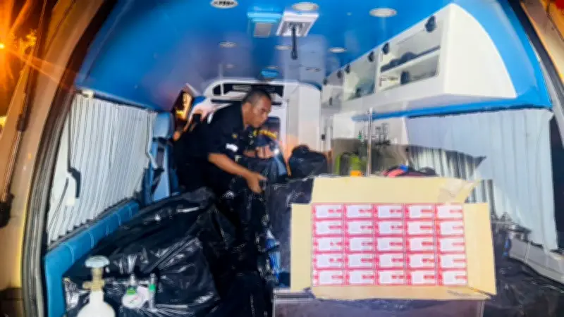 จับรถกู้ชีพปลอมขนบุหรี่เถื่อน 14 ลัง 7,000 ซอง จากชายแดนสังขละบุรี