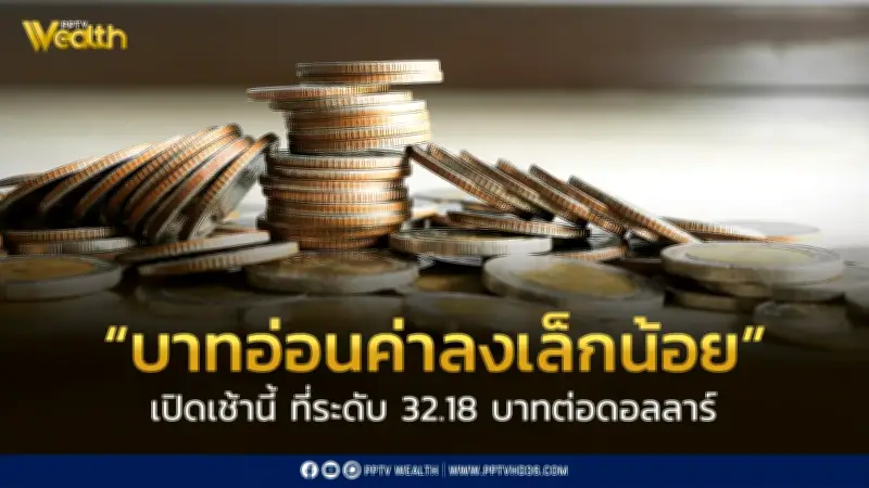 เงินบาทเปิดเช้าอ่อนค่าลงเล็กน้อยที่ 32.18 บาทต่อดอลลาร์ เผชิญความผันผวนจากปัจจัยเสี่ยง