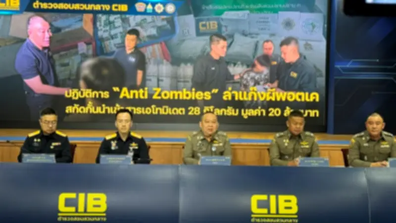 เมื่อวันที่ 9 เมษายน 2569 เวลา 11.00 น. ที่กองบัญชาการตำรวจสอบสวนกลาง (บช.ก.) พล.ต.ท.ณัฐศักดิ์ เชาวนาศัย ผบช.ก. พร้อมด้วยผู้บังคับบัญชาระดับสูงจากหน่วยงานที่เกี่ยวข้อง ร่วมแถลงข่าวผลปฏิบัติการ "Anti Zombies ล่าแก๊งผีพอตเค" ซึ่งสามารถจับกุมผู้ต้องหาได้ 7 ราย และยึดสารเอโทมิเดตกว่า 28 กิโลกรัม มูลค่ากว่า 20 ล้านบาท