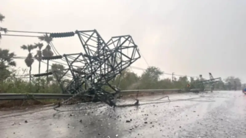 พายุฤดูร้อนถล่มปราจีนบุรี เสาไฟฟ้าแรงสูงหัก 8 ต้น ล้มขวางถนนสาย 33