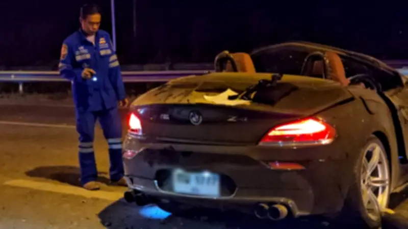 อุบัติเหตุสะเทือนใจ! เก๋งบีเอ็มดับเบิลยู Z4 พลิกคว่ำกลางถนนหาดใหญ่ คนขับกระเด็นเสียชีวิตคาที่