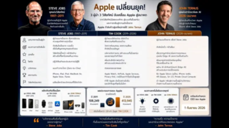 ในวันที่เกมเทคโนโลยีไม่รอใคร แอปเปิลได้ประกาศเปลี่ยนแปลงผู้นำองค์กรครั้งสำคัญ การตัดสินใจครั้งนี้เกิดขึ้นท่ามกลางการแข่งขันที่รุนแรงในตลาดโลก ซึ่งสะท้อนถึงความท้าทายที่บริษัทต้องเผชิญในการปรับตัวเพื่อความอยู่รอดและเติบโตอย่างยั่งยืน